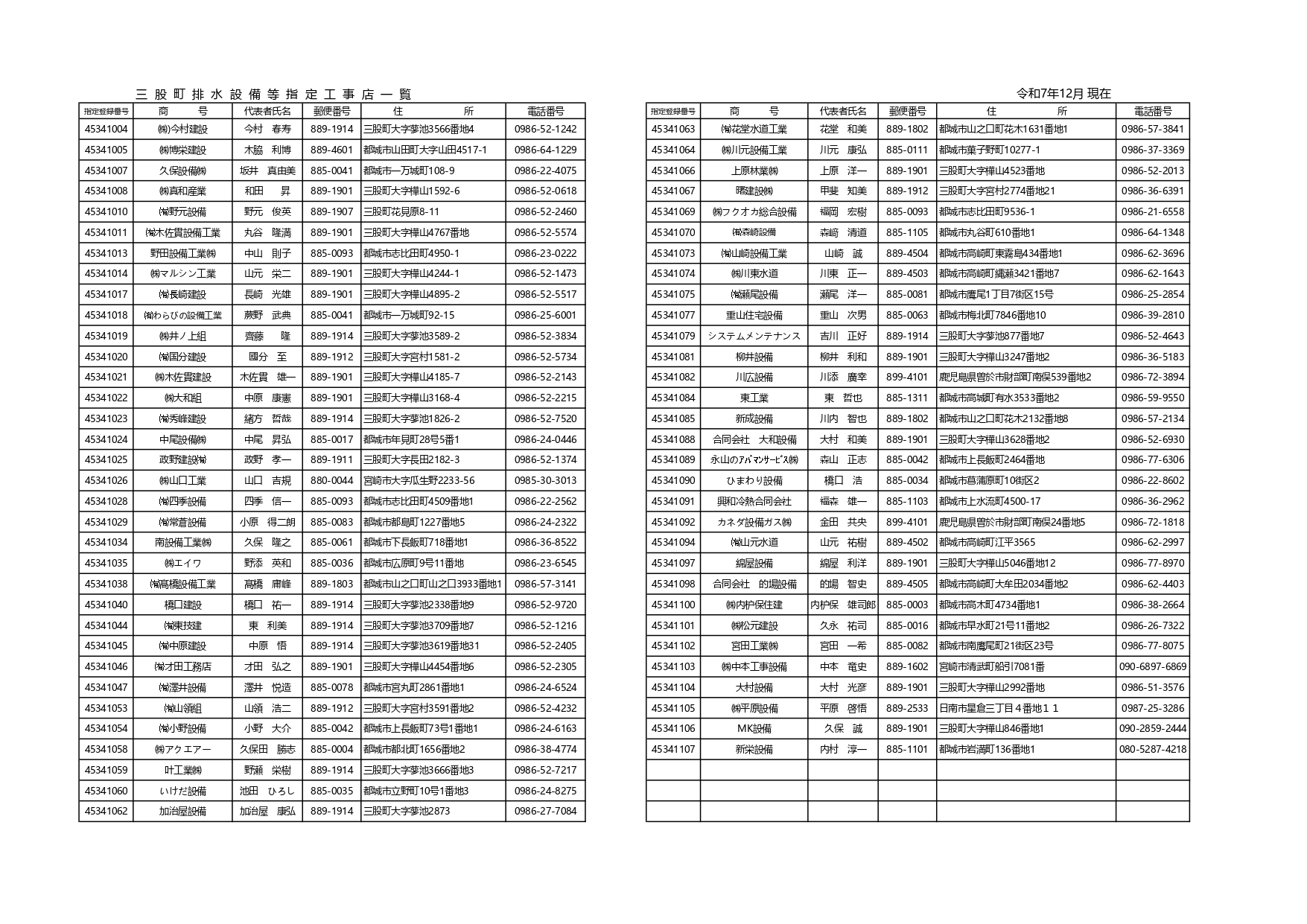 三股町排水設備等指定工事店一覧のダウンロード(令和7年12月更新)