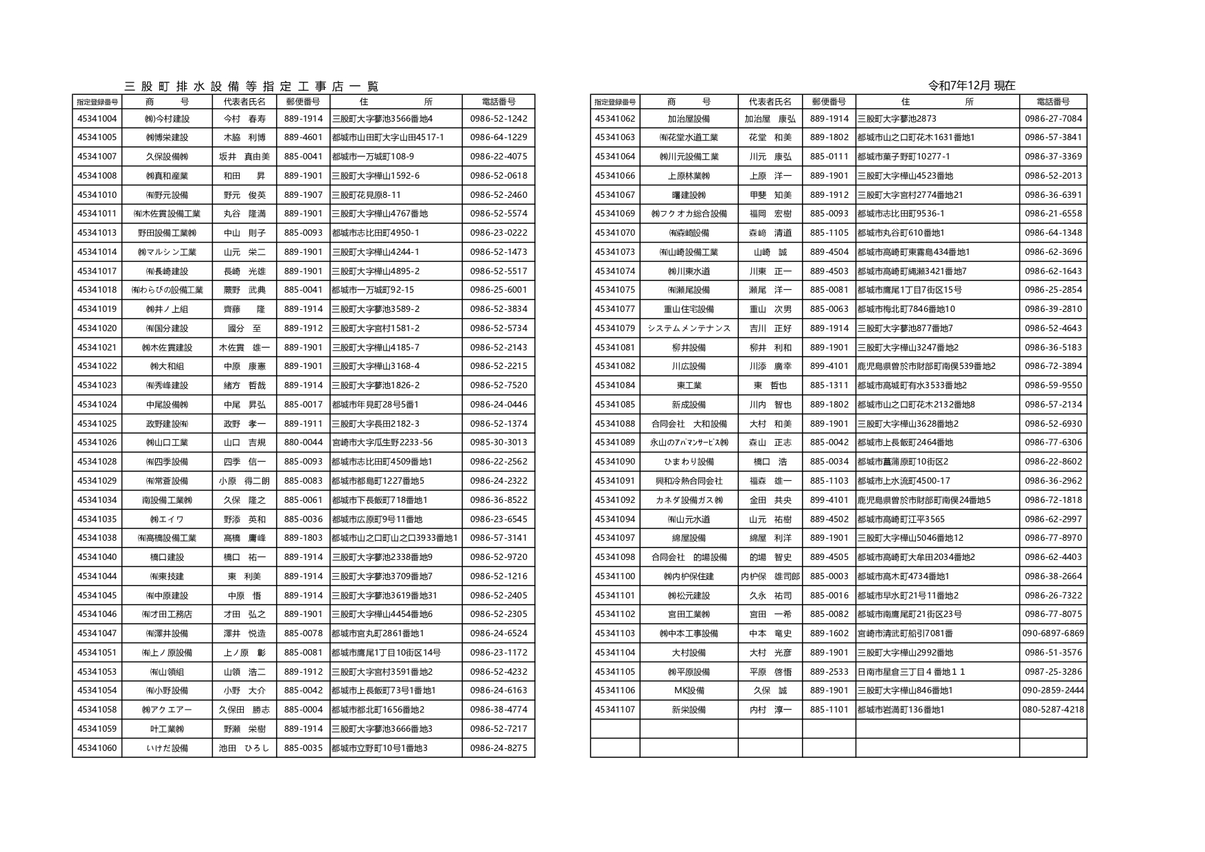 三股町排水設備等指定工事店一覧のダウンロード(令和7年12月更新)