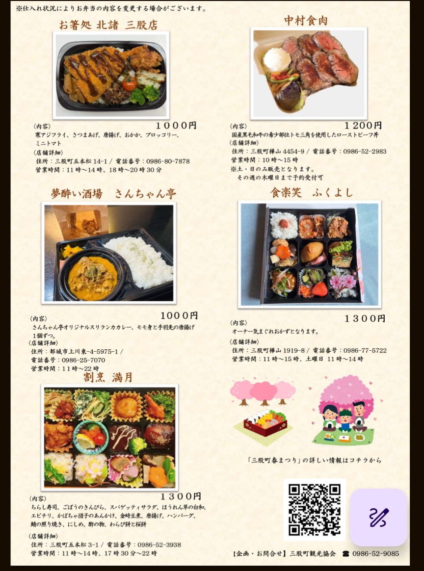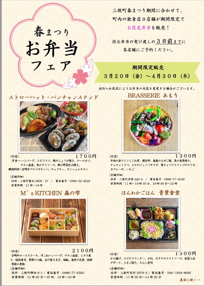 お花見弁当を販売!町内選りすぐりのお弁当を持って、