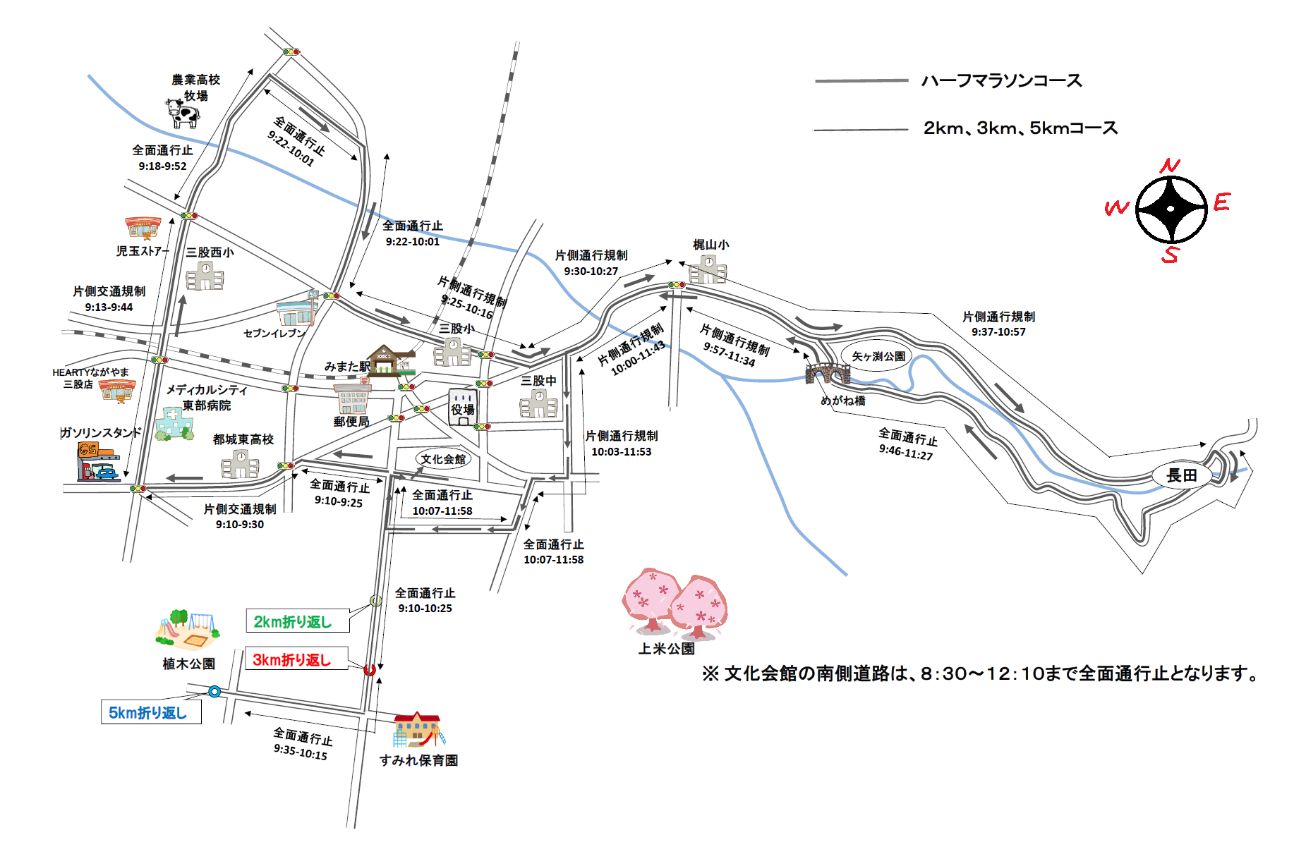 大会当日の2026年1月25日(日)は、町内各所において大規模な交通規制を行います。コースの沿線は交通規制時刻の前後においてもかなりの交通混雑が予想されますので、皆様のご協力をお願いいたします。